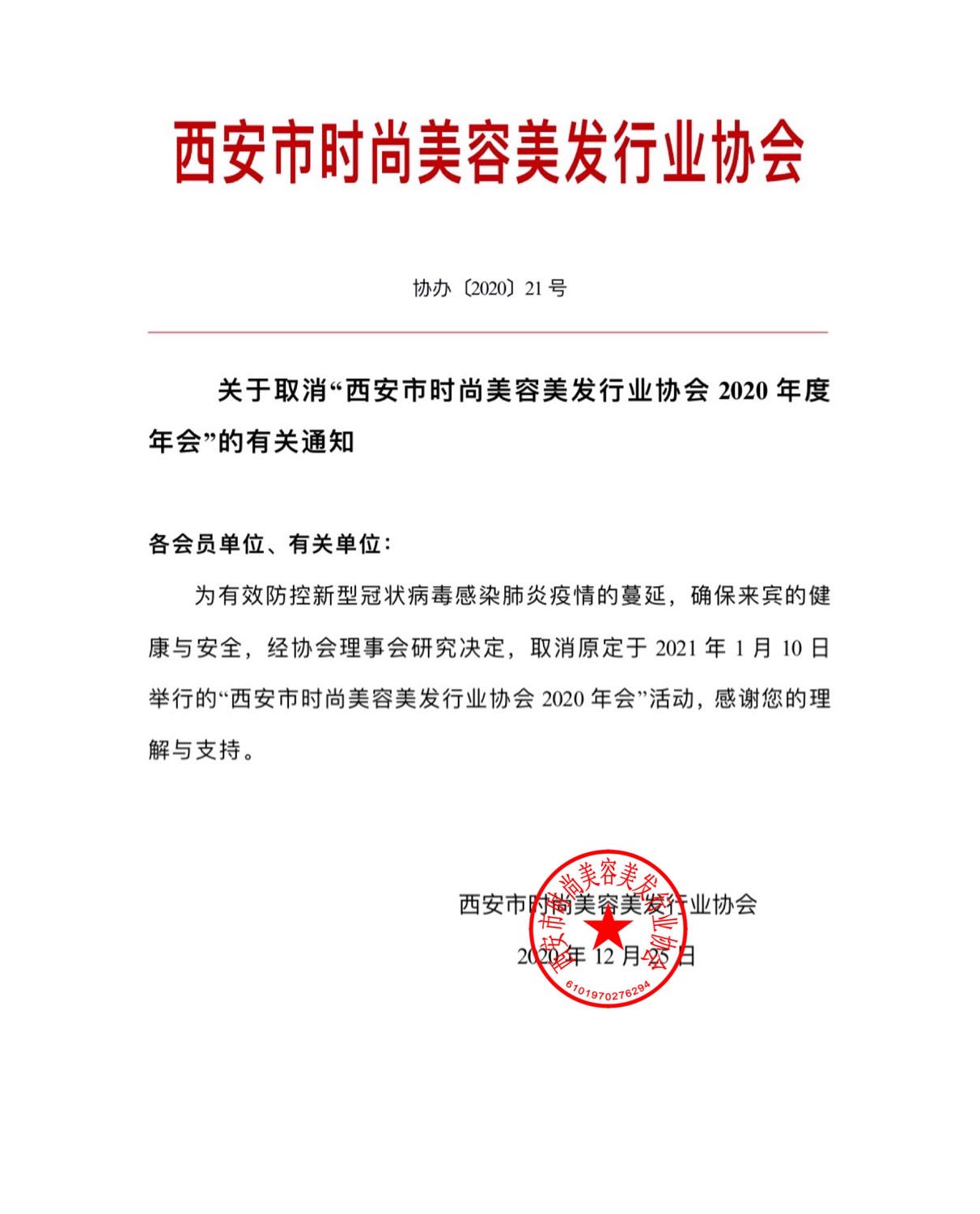 关于取消“西安市时尚美容美发行业协会2020年度年会”的有关通知